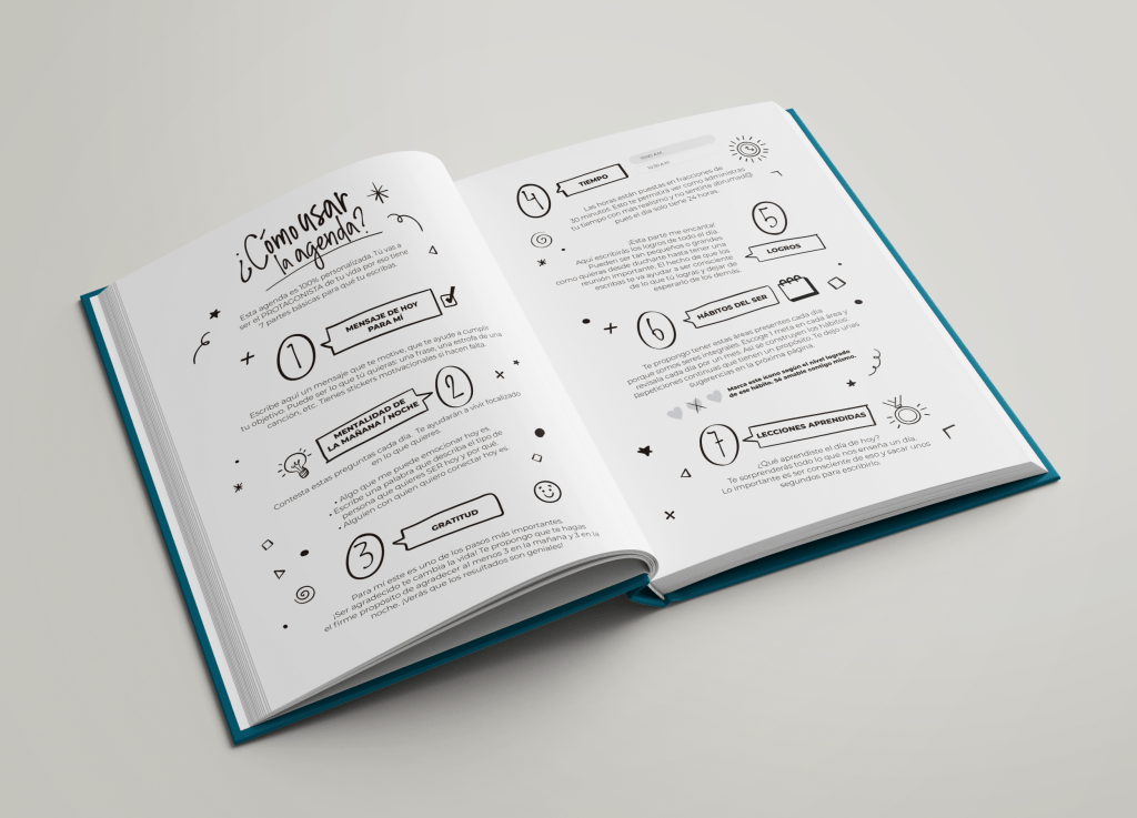 Es una agenda que integra diferentes aspectos de nuestra vida de forma integral: mentalidad, gratitud, bienestar, creatividad, conexiรณn con otros, aprendizajes…