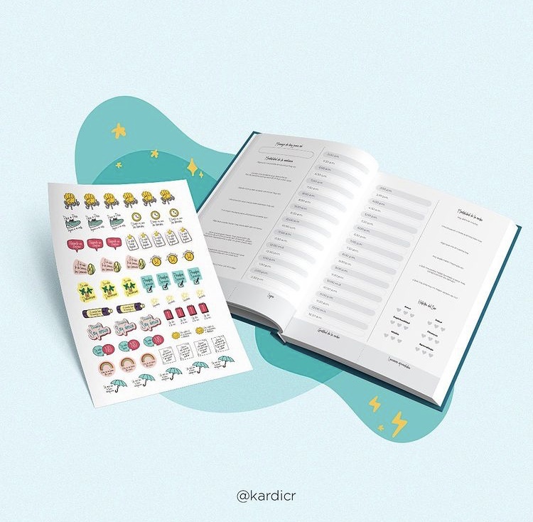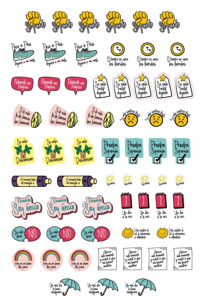- Tiene stickers con frases y dibujos motivacionales a full color!